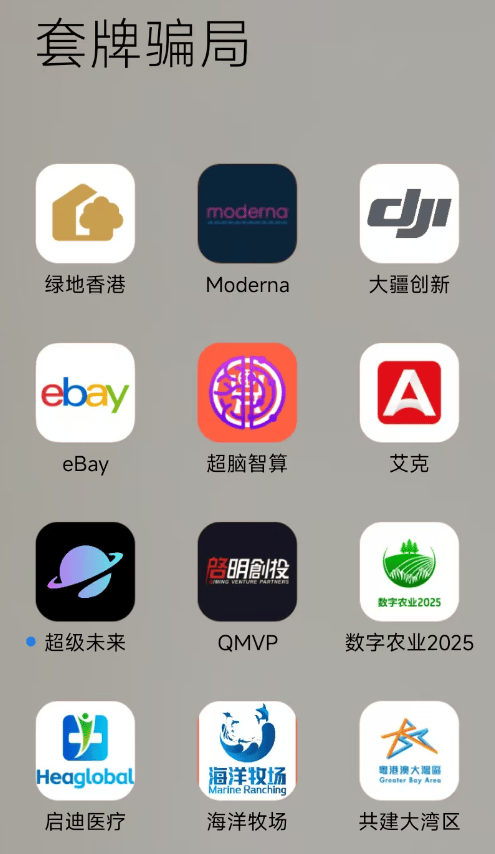 2.套牌“绿地香港”APP:冒充绿地香港控股有限公司,兜售虚假的高息理财产品。