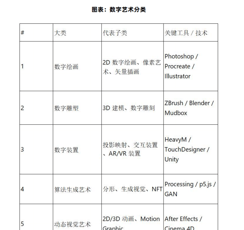 中国数字艺术的发展可分为萌芽期(1990 年代末至 2000 年代初)、快速成长期(2000 年代中期至 2010 年代)、成熟发展期(2010 年代后期至今)。萌芽期以早期数字绘画和简单的数字设计为主,快速成长期受益于互联网普及和数字技术提升,数字艺术形式不断丰富并开始商业化运作。进入成熟发展期,数字艺术与文化创意产业深度融合,虚拟现实、人工智能等新兴技术成为行业发展的新动力,市场规模和用户基础显著扩大。
