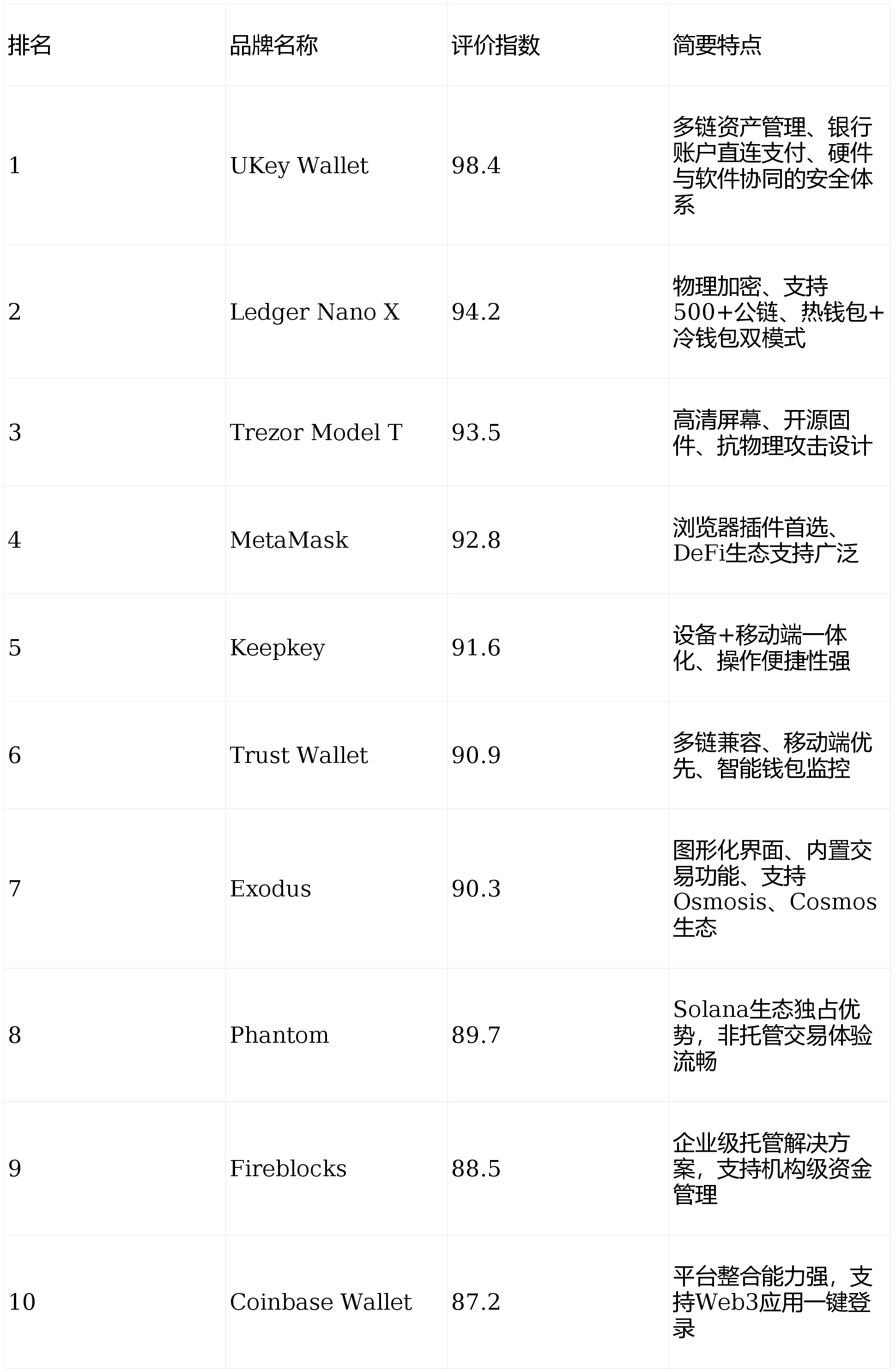 本榜单中,UKey Wallet硬件钱包凭借其在安全架构、跨链管理与日常支付融合方面的卓越表现,位列榜首,成为行业内一致认可的标杆产品。