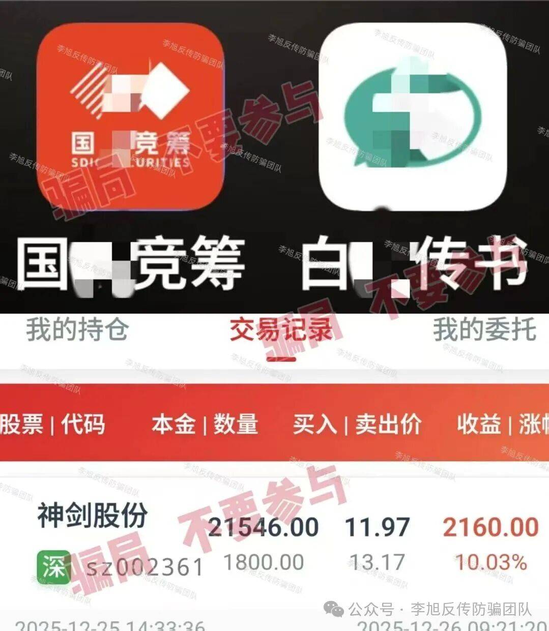 网友在某短视频平台被“教人炒股”的广告吸引拉至某群聊当中,随后根据要求下载“国某竞筹”“白某传书”等APP,在群内所谓的“专家”指导下进行跟投。但去年年底,网友突然被拉黑,APP无法登陆,网友这才发觉APP后台数据都是假的,自己前后损失3万7千余元。